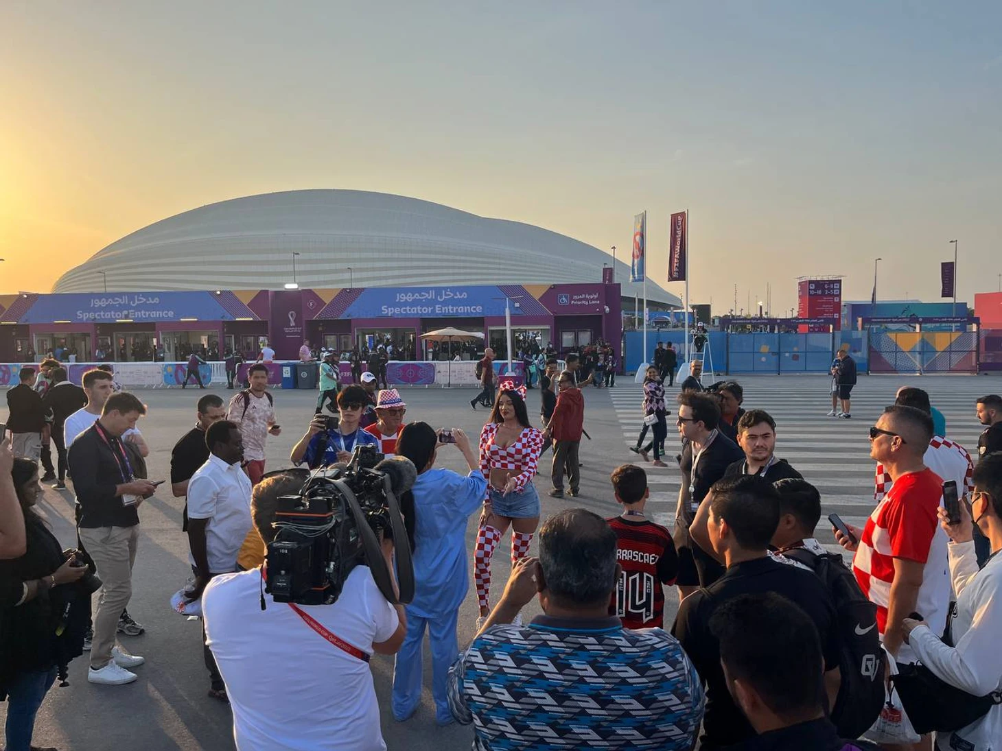 Рядом с японцами та самая хорватская болельщица Ивана Кнолль, звезда ЧМ-2022, которую катарцы массово критикуют, но потом фотографируют на трибунах.