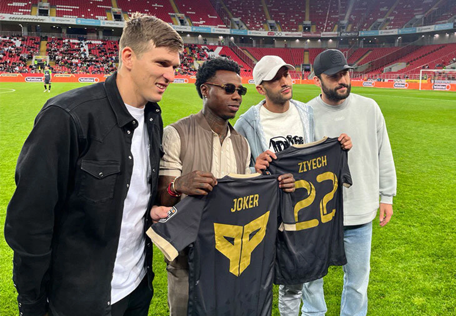 Еще Хаким получил футболку «Бей Беги» с 22 номером, погулял по газону «Открытие Банк Арены», сфотографировался с Джикией, Соболевым и Промесом – и ушел вместе с Квинси еще до конца матча.