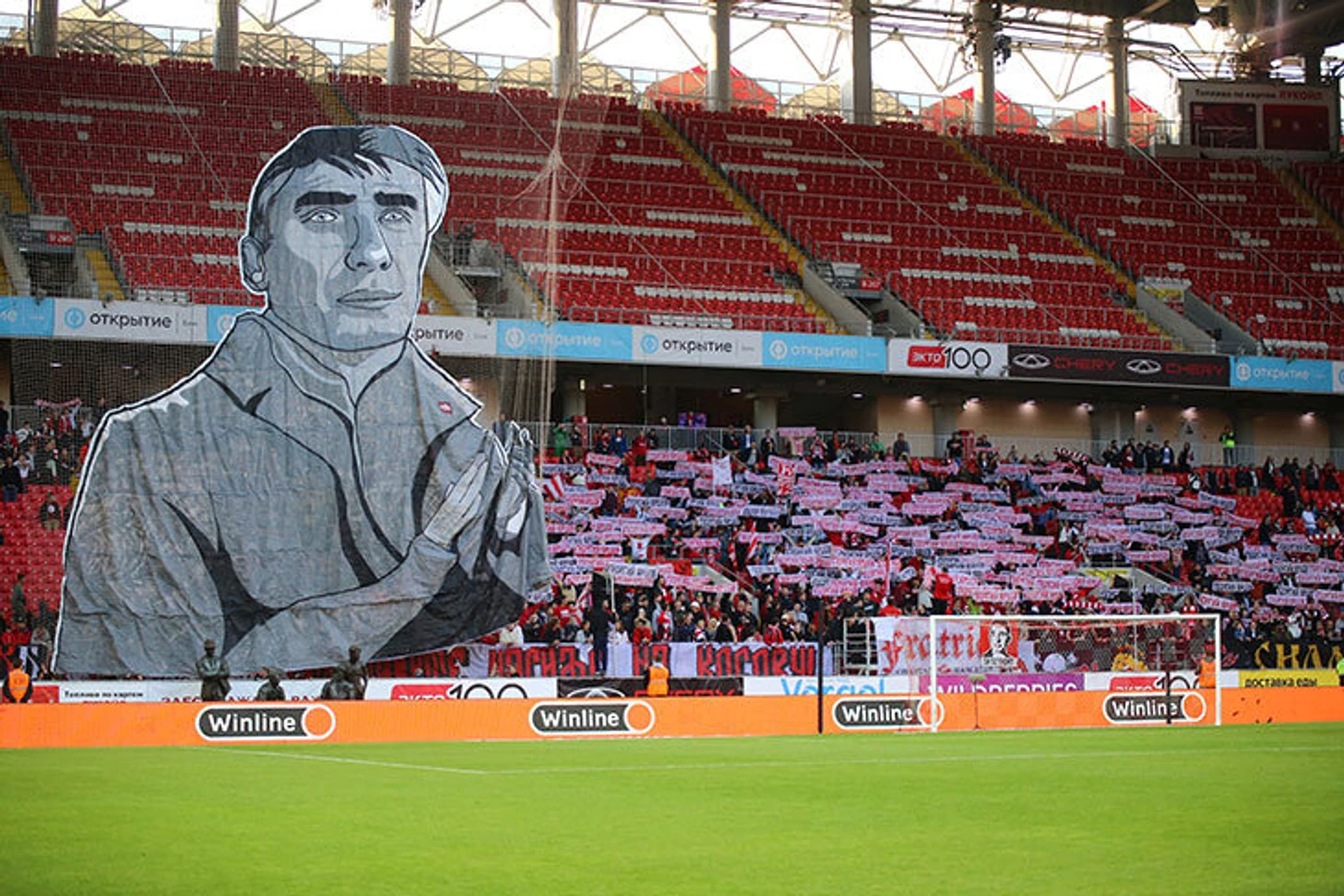 Остальные – про Георгия Ярцева. Легендарный футболист и тренер «Спартака» скончался 15 июля 2022 года. Фанаты красно-белых сделали в честь тренера-чемпиона огромный баннер на всю трибуну и много небольших – просто с именем.