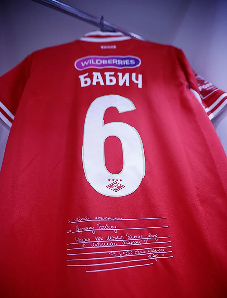 Технически это оказалось гораздо проще, чем мы думали. Мы отсканировали письма с пожеланиями, поэтому у нас сохранился оригинальный текст и почерк людей. Дизайнеры сделали из сканов макеты на майки, а потом их нанесли на нижнюю часть футболки сзади. На РПЛ там располагается логотип Winline, на Кубке России – нет. Просто отдали это в компанию, которая нам делает нанесения.