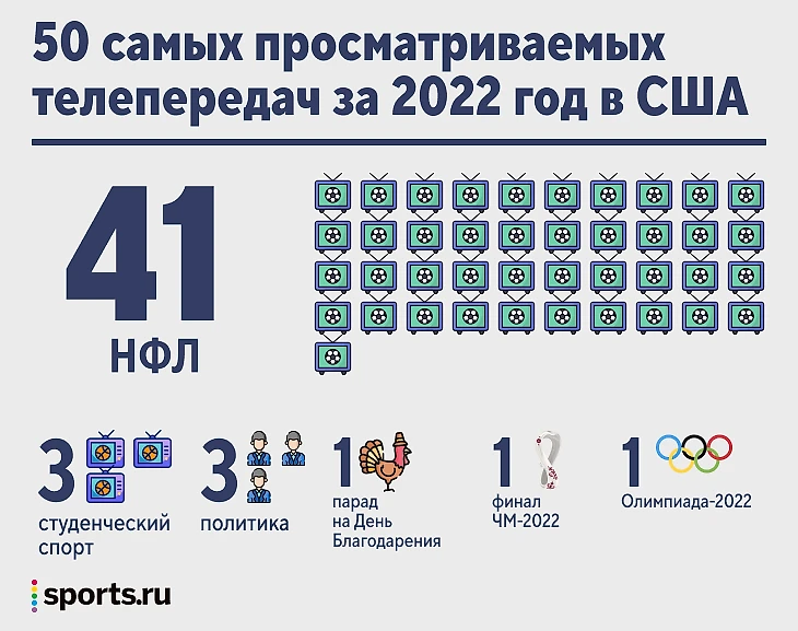 Очевидно, что спорт может изменить расклад сил среди потоковых стримингов. В США трансляции – не просто затычка для дыр в телепрограмме. Трамп и Байден тратили миллионы долларов на рекламу в НБА, НХЛ НФЛ, МЛБ и МЛС, 46 из 50 самых просматриваемых телепередач за 2022 год в Америке – спортивные матчи (41 – НФЛ, 3 – студенческий спорт, 3 – политика, 1 – Олимпиада-2022, 1 – финал ЧМ-2022, 1 – парад на День Благодарения). Поэтому неудивительно, что все американские компании (в том числе Apple) видят в спортивных трансляциях большой потенциал.