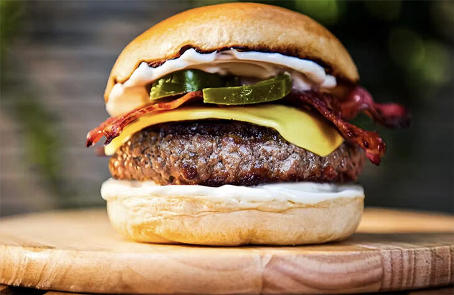 Положите котлету, покрытую сыром, на булочку, добавьте бекон и халапеньо