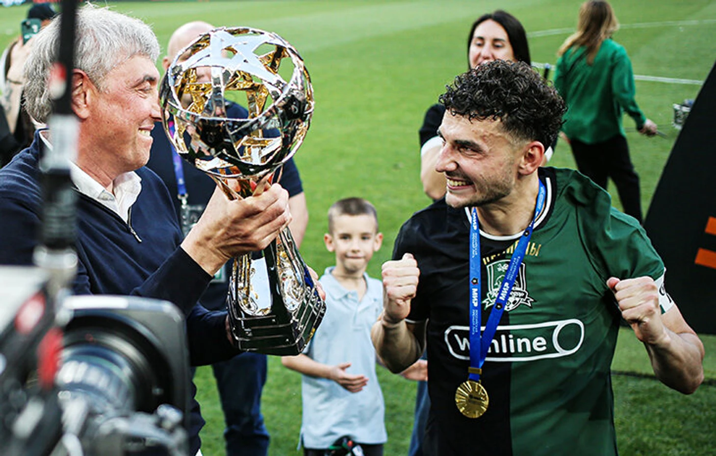 Вручив медали, он отошел, чтобы со стороны понаблюдать, как команда поднимает трофей. Наверное, именно таким он и представлял себе момент триумфа «Краснодара». Но уйти в тень у Галицкого не получилось – буквально через пару секунд Эдуард Сперцян предложил ему подержать кубок.