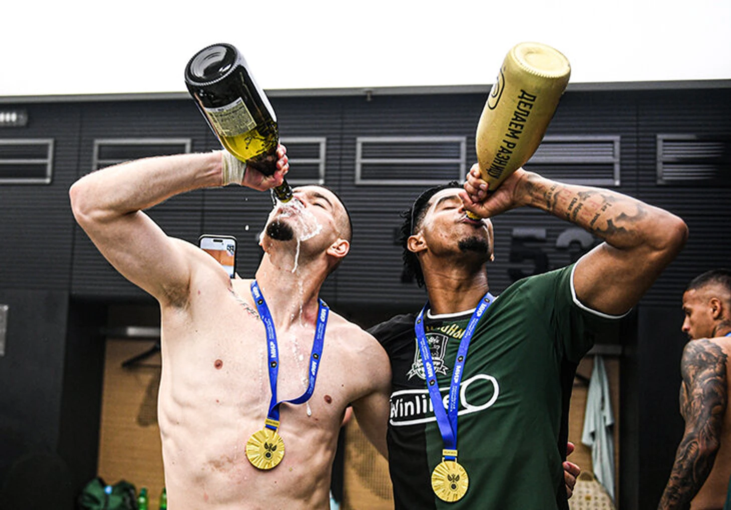 Дальше футболисты скрылись от внимания публики и отмечали до самого утра.