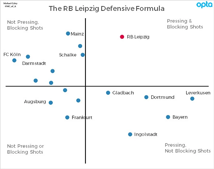 По всем оборонительным метрикам «Лейпциг» в самом топе Европы (хороши в прессинге, хороши в контрпрессинге, хороши в позиционной защите) – допускают мало xG, блокируют под 30% ударов соперника, допускают мало передач в опасных зонах, допускают чуть ли не меньше всех ударов после быстрых атак (опять же – смотрите по дистанции – в отдельной игре, как с «Дортмундом», может быть все, что угодно).