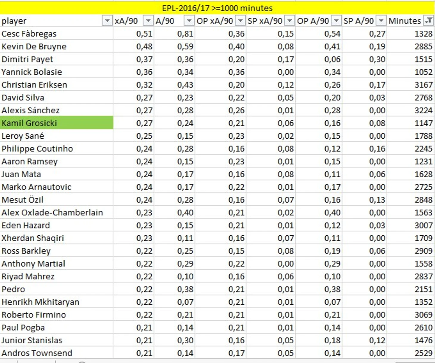 Второй – это Камиль Гросицки, которого Силва зимой купил у «Ренна». По xA/90 он седьмой в АПЛ среди тех, кто сыграл больше 1000 минут – в чемпионшипе можно ожидать как минимум сохранения таких данных. Положительный момент, что Гросицки может создавать как с игры, так и со стандартов, а еще может обыгрывать, неплохо открывается и участвует в построении атаки. Для меня вообще будет удивительно, если он не уйдет в АПЛ или какой-нибудь клуб из топ-5 чемпионатов – его класс явно превосходит чемпионшип, и у Силвы он был одним из лучших. Но если останется, то потенциально это главный креативщик для Слуцкого – и с игры, и со стандартов.