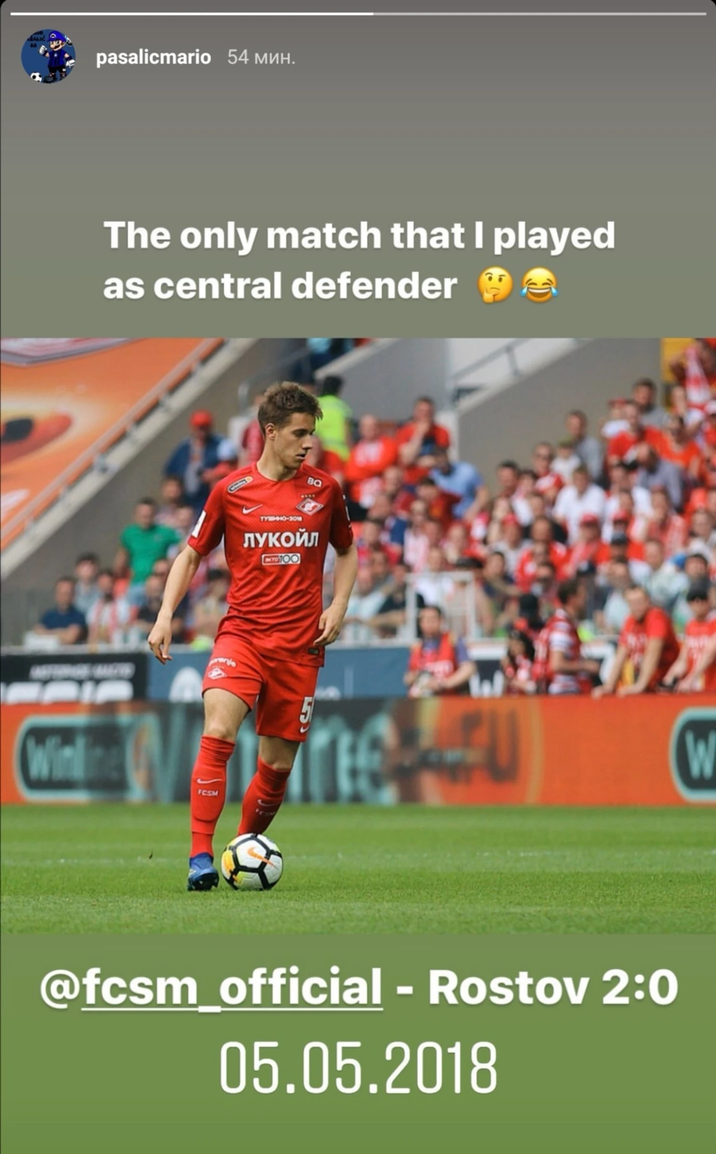 Бывший полузащитник московского «Спартака» и сборной Хорватии Марио Пашалич в своем Instagram вспомнил игру московского клуба, в котором он выступил в роли центрального защитника.