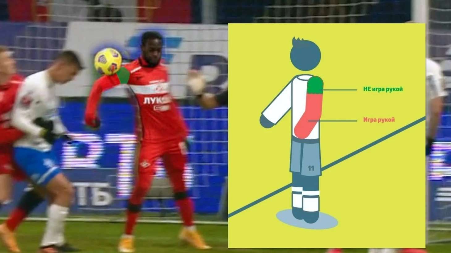 Вот картинка на сайте РФС, объясняющая, что Мозес сыграл рукой и пенальти назначен правильно.