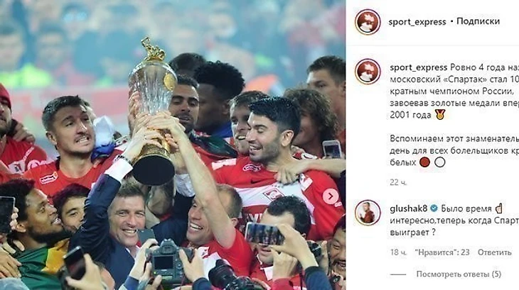 Об этом футболист написал в диалоге с подписчиками в Instagram под постом «СЭ» о чемпионстве «Спартака» в 2017 году.