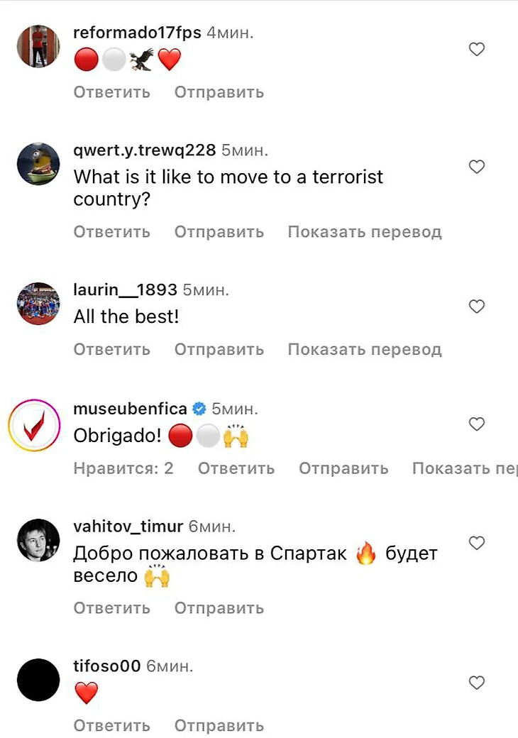 Собрали для вас реакцию болельщиков «Бенфики» на этот трансфер. Кто-то желает удачи, а кто-то и негодует: