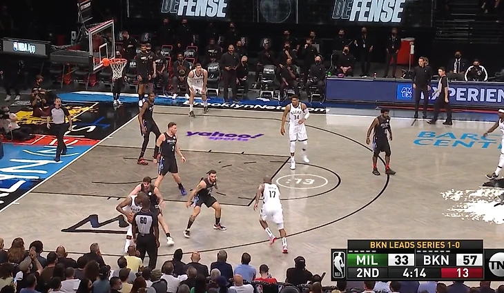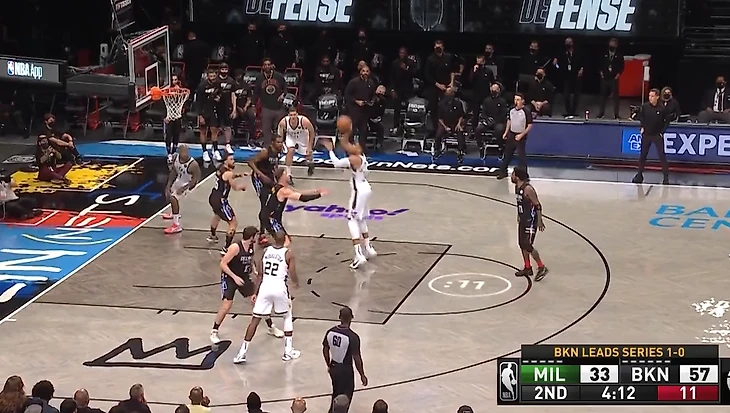 КД делает то, что он хочет, он в невероятной форме и он мотивирован, будь то Янис, будь то Такер с Холлидеем, он всех легко обыгрывает и делает вещи которые 99.9% остальных игроков в лиге не сделают. Поэтому, в этой серии Бакс играют так как позволяет им Нетс, Дюрант и Кайри включаются когда нужно, они гениально ведут игру команды и заигрывают открытых партнеров, великолепно вписался в основу Браун, который и передачу отдать может и подчистить за партнерами + шикарная защита, они с Харрисом постоянно бороздят просторы площадки и открываются, и раз за разом у Бакс проблемы.