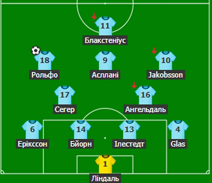 В опорной зоне две мощные девицы Сегер и Ангельдаль представляющие клубы Швеции, справа на фланге и правым центральным защитником являются представители Баварии Мюнхен в лице Глас и Илестедт, второй центральной является Бйорн из Мальме, а слева Эрикссон из Челси, на воротах очень сильный воротарь из Атлетико Мадрид.