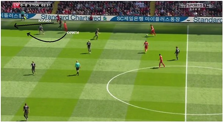 Однако на старте этой встречи один эпизод обострения в исполнении Клайна, который почему-то остался единичным случаем, все же произошел. Тонкое взаимодействие на бровке с Ориги привело к тому, что британец создал относительно неплохой момент кроссом на Фирмино, но завершить атаку ударом не удалось.