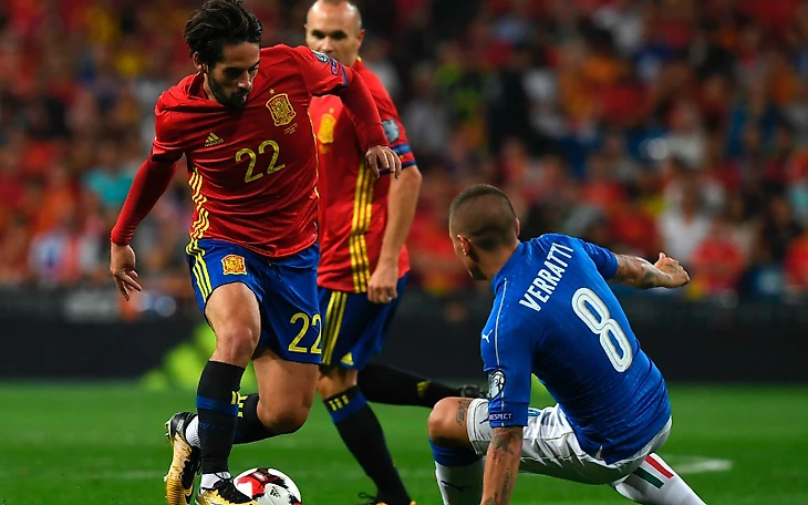 Опорная зона итальянцев оставалась слабым звеном, и пресловутое отсутствие форвардов в составе Испании в данной ситуации усугубляло ситуацию. Второй гол Иско подтвердил правильность выбора Лопетеги тактики на этот матч. Пока Инсинье и Кандрева помогали прессинговать соперников, смещаясь в центр, фланги спокойно заполняли оппоненты в красно-синей форме, растягивая защиту гостей. Пока Де Росси и Верратти пытались ликвидировать разрывы между линиями в обороне, оттягиваясь глубже, Коке и Иньеста получали время на раздумье перед пасом.