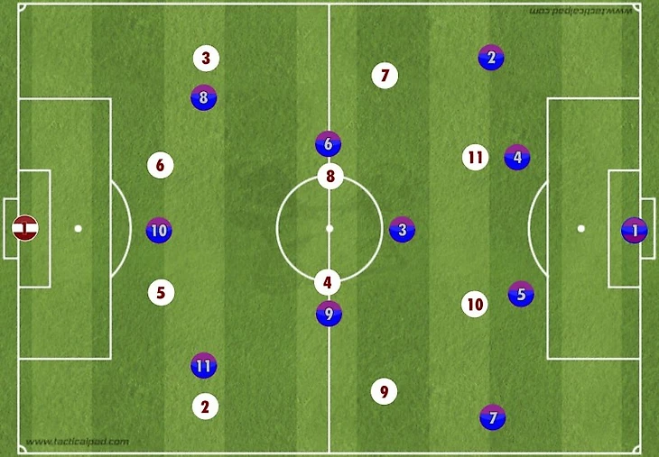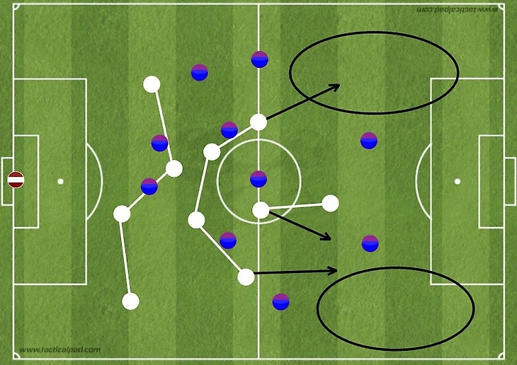 На иллюстрации показана структура "Барселоны" в момент владения мячом. На видео ниже можно увидеть, как именно происходит движение игроков.