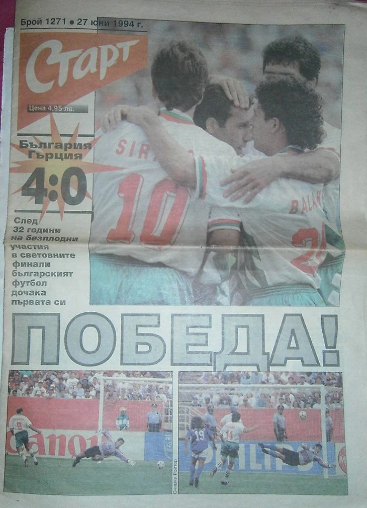 После матча тысячи людей выходят на улицы болгарских городов, вся пресса выходит с ликующими заголовками. В другом матче группы Аргентина обыгрывает Нигерию, уступая в счете, теперь же газеты требуют: "Нам нужно равенство очков с Аргентиной!" Регламент турнира вполне позволял и ничью, благо из шести команд, занявших третьи места, четыре лучших проходили в 1/8 финала, нашей российской сборной такой чести, увы, не выпало.
