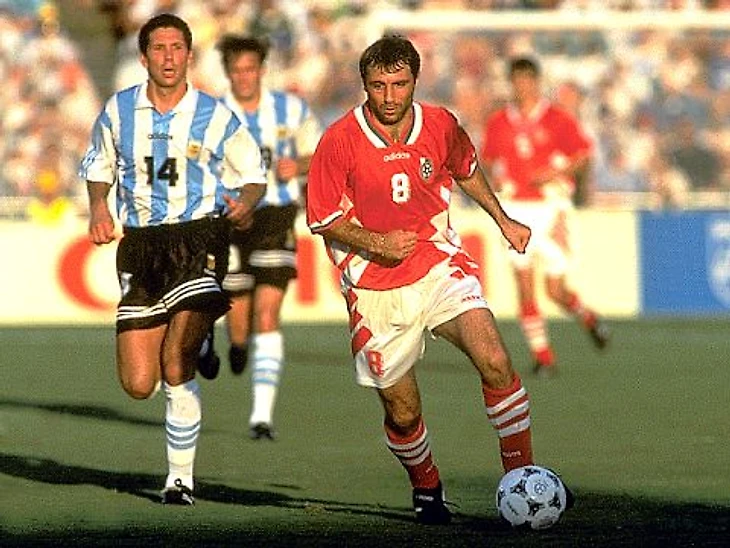 Именно перед матчем с болгарами отсутствовал Диего Армандо Марадона. Человек, без которого немыслим аргентинский футбол, отыграл первые две игры с Грецией (где забил свой последний гол на чемпионатах планеты) и Нигерией, а затем в его анализах снова обнаружили допинг. Впрочем, уже в то время главный футбольный скандалист мира вовсю употреблял самые разнообразные вещества, не только допинг, но и наркотики, впрочем, все и так об этом отлично знают. Без Марадоны Аргентина была уже немного не та...