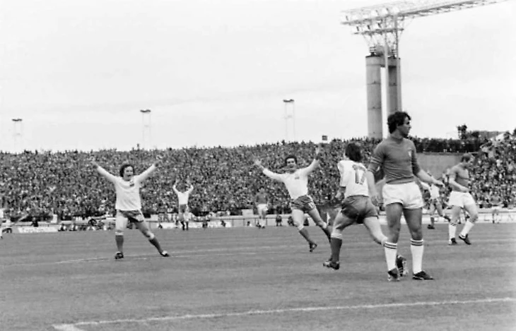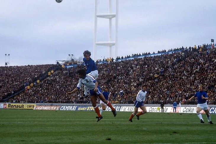 36-я минута. Анри Мишель предпринимает попытку нанести дальний удар. Мяч проходит далеко в стороне от ворот Дино Дзоффа.