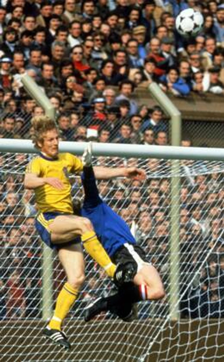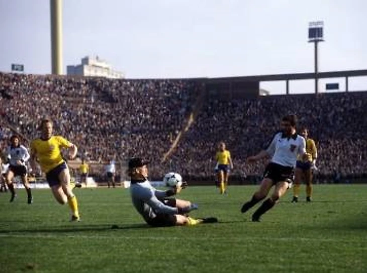 52-я минута. Леннарт Ларссон от правой бровки делает передачу верхом на 11-метровую отметку. Шёберг, опережая Обермайера, ногой с лета переправляет мяч в дальний угол ворот, но немного неточно.