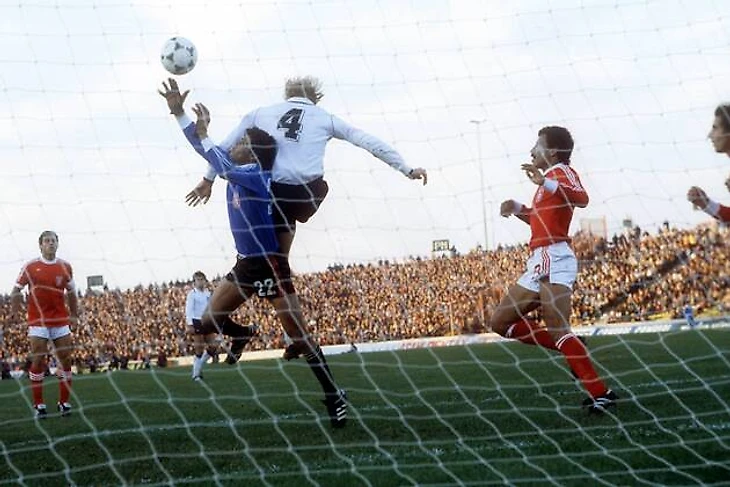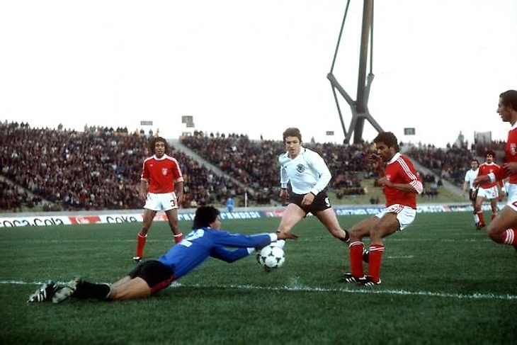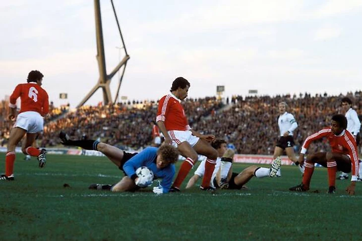 32-я минута. Карл-Хайнц Румменигге проходит по центру, отдает пас чуть вправо и Ханси Мюллер метров с двадцати пяти бьет в дальний, правый угол ворот. Наили в падении накрывает мяч.