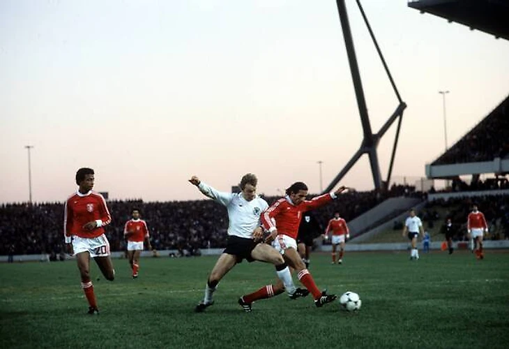 13-я минута. Хайнц Флоэ с углового на правом фланге навешивает на дальнюю штангу. Мохтар Наили опережает Дитера Мюллера и кулаком выбивает мяч в поле. Бонхоф с отскока от газона метров с пятнадцати выстреливает по воротам и Наили в прыжке из-под перекладины достает этот мяч. Но судья Ороско фиксирует офсайд у Дитера Мюллера.