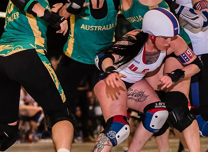 Впрочем, для понимания стратегии требуется время, поэтому первое, что привлекает внимание – хиты. Здесь запрещены удары и толчки руками, а также контакт выше плеча и ниже колена, но в остальном это вполне боевой вид спорта – можно атаковать соперниц корпус в корпус, плечо в плечо и бедро в бедро. Иногда роллер-дерби травмоопасно (например, капитан сборной Англии трижды ломала ногу за последние восемь лет), но таких случаев хватает в любом контактном спорте. В остальном это довольно эффектно.