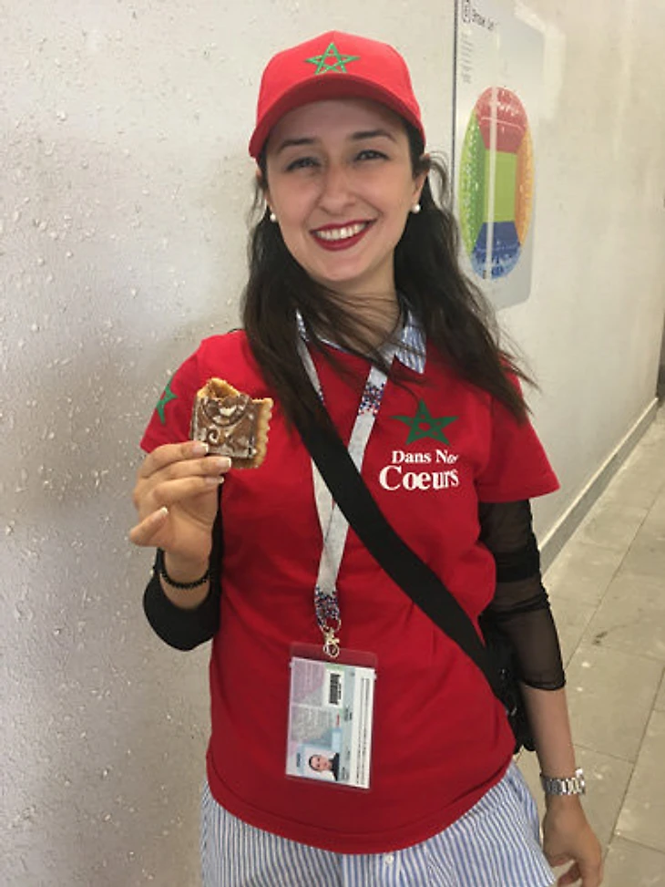 «Тут точно нет алкоголя? Я мусульманка, мне нельзя алкоголь. Мне кажется, в России вполне может быть выпечка с алкоголем, почему бы и нет. (пробует) Ммм, очень вкусно, почти как у нас в Марокко! Сладостей у нас невероятно много, есть одна похожая – мханнча из миндального теста с джемом. Я иду еще на два матча, буду покупать такие пряники, а может даже и с собой увезу».