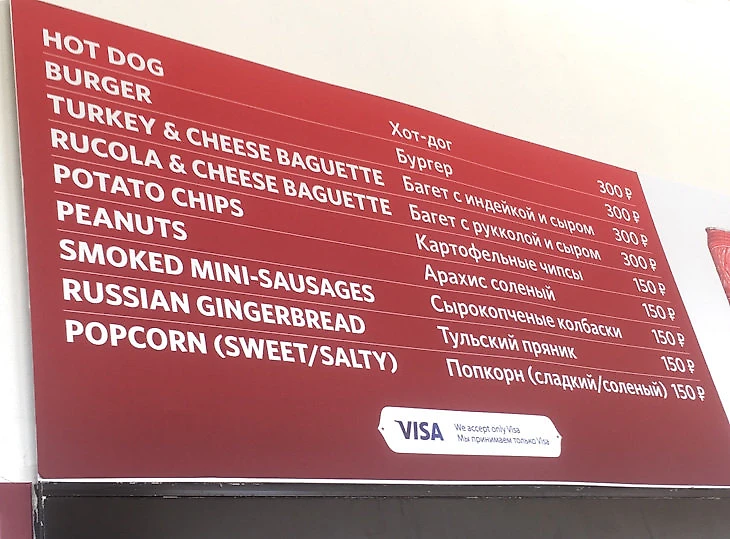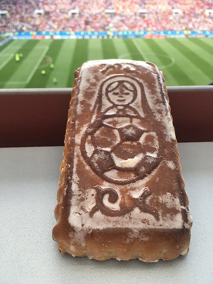 На ЧМ-2018 в меню разрешили ввести одно исключение – на усмотрение компании ArenaFoods, которая принадлежит «Шоколаднице», базируется на стадионе «Спартака» и отвечает за кейтеринг на чемпионате мира. На Кубке Конфедераций можно было попробовать кулебяку, довольно вкусный пирожок с капустой, но к ЧМ его попросили заменить на что-то сладкое, потому что место пирожка занял интернациональный багет с руколой и сыром. Так в меню появился тульский пряник – с футбольной матрешкой.