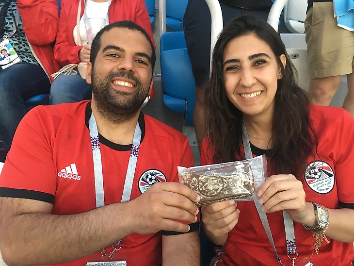 «Мы немножко грустим из-за вылета нашей сборной, но пряник попробуем, спасибо. Мы бы предпочли увезти из России хорошие воспоминания об игре Египта, но теперь увезем хотя бы пряник. Хотя у нас есть такой же, называется пастафлора – много-много муки и начинка из джема».