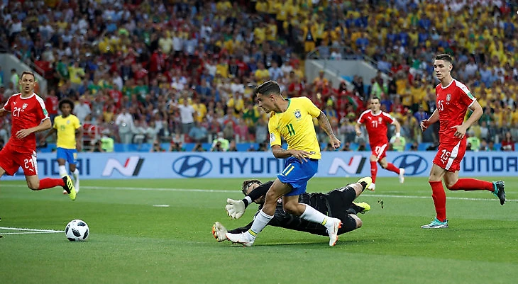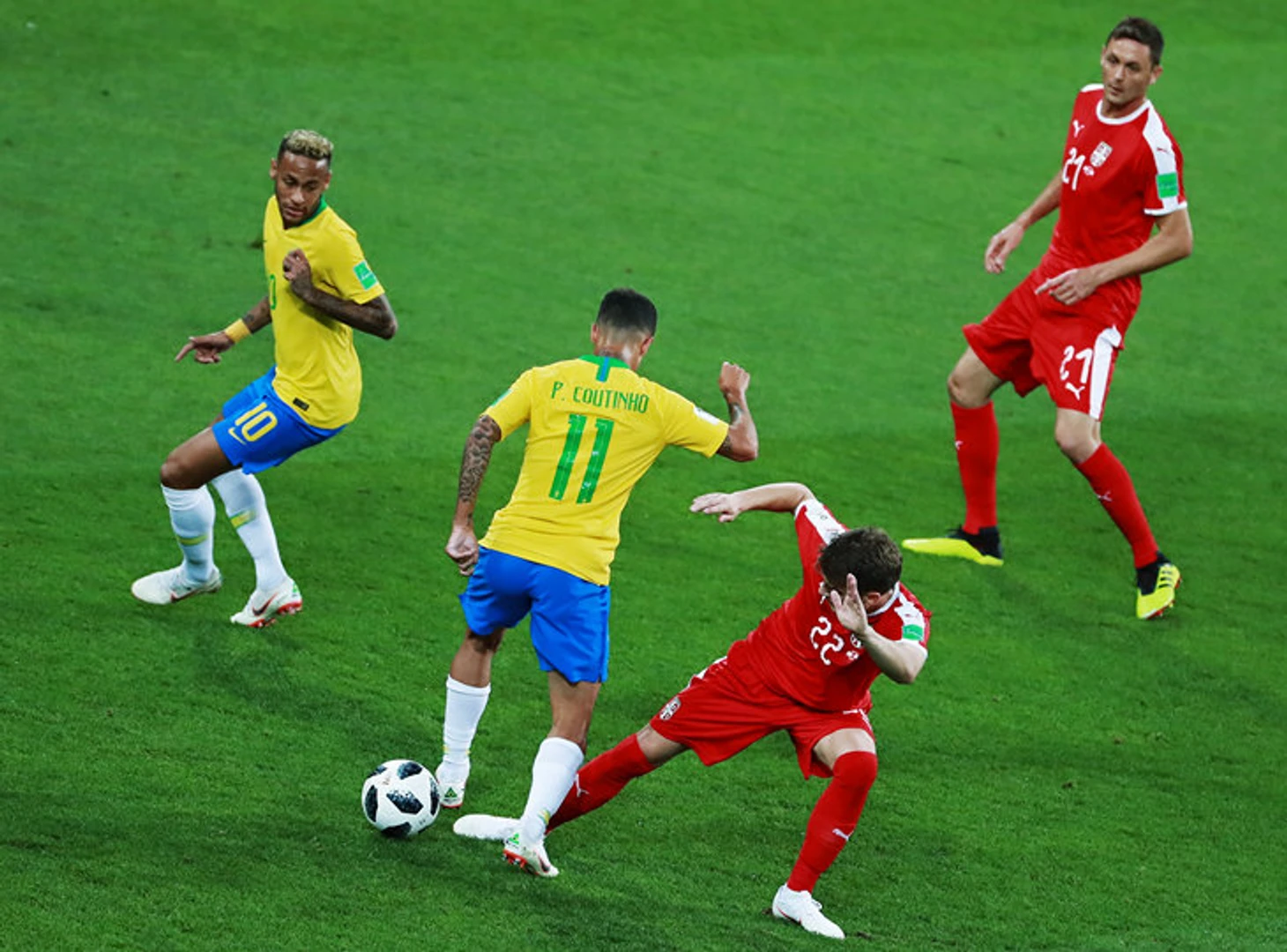Еще один эпизод из матча с Сербией, нехарактерный для клубной версии Коутиньо: в начале второго тайма еще при счете 1:0 он отдал неточный пас, сербы организовали выход три в два, но бразилец рванул назад так быстро, что прибежал в свою штрафную одновременно с Каземиро. В чужой штрафной он тоже появляется регулярно, чередуя подключения с Паулиньо, а также пару раз прошел оборону соперника, пасуясь пятками с Неймаром – причем оба раза точно.
