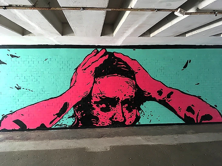Во-вторых, локация: подземный переход – важная история для России. Там пьют, поют, получают по лицу, продают кружевное белье и даже иногда играют в футбол. Гигантские муралы на стенах пятиэтажек всегда впечатляют масштабом, но это более глобальная тема, а вот переход – прямо свежая идея.