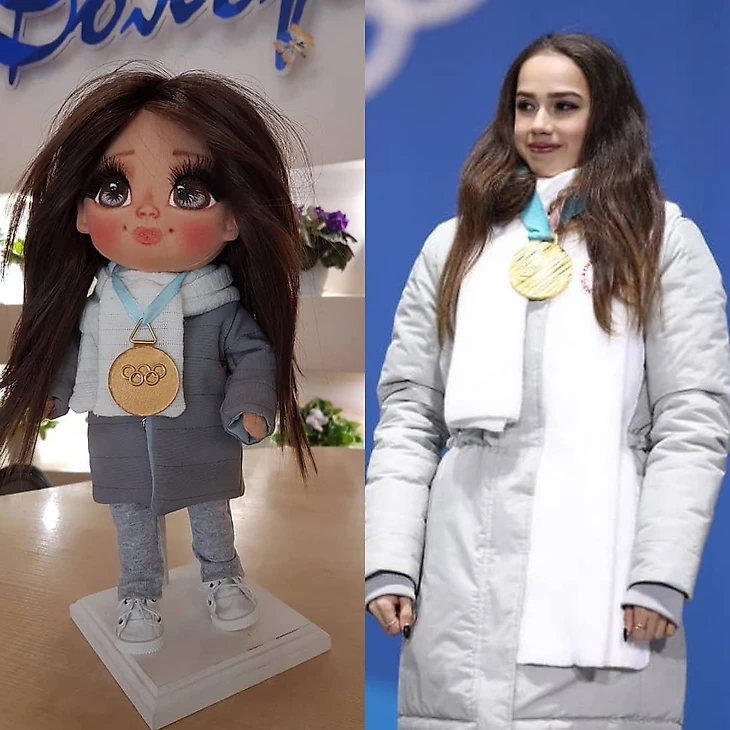 А совсем недавно у Алины, как и у каждой значимой фигуристки, появилась своя официальная кукла. В марте компания «Империя кукол» выпустила в единственном экземпляре вот такую маленькую копию нашей чемпионки в её честь.