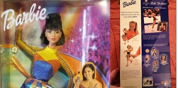 Но называть – эту «Барби» Тарой Липински – некорректно. Потому что у производителя не было цели скопировать её внешность, по сути она была просто рекламным лицом, ни больше ни меньше. Как и «Барби Мишель Кван» вышедшая через 4 года к ОИ-2002.