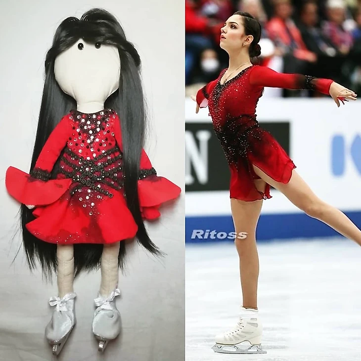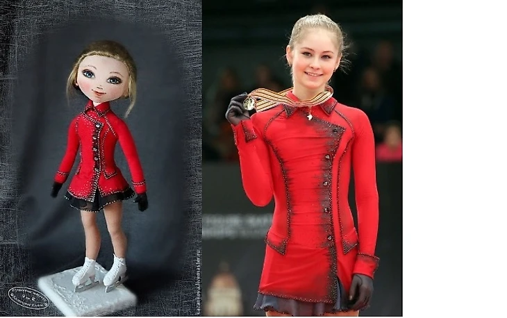 Ну и теперь плавно переключимся на "разные версии" наших фигуристов. Кукла ручной работы, повторяющая знаменитый образ Юлии Липницкой.