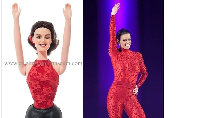 А недавно в соцсетях сравнили её новый образ в розовом костюме вот с такой вот «Барби». Ну как бы, кроме цвета, сходств не особо, у «Барби» материал костюмчика поприличнее, нет пошлого глянца и блёсток. Хотя выйди реальная девушка в таком наряде, было бы всё равно не очень.