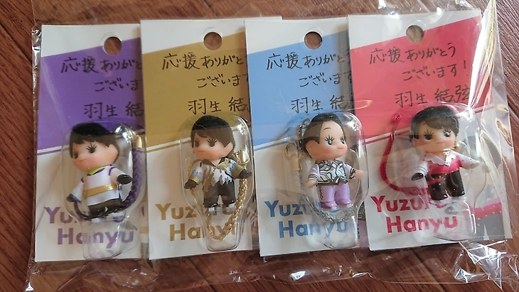 Вообще в наше время официальных кукол и игрушек в виде фигуристов не много, но зато появился интернет, и можно найти множество самодельных вещей от болельщиков. И дальше мы пойдём именно в эту сторону. Но для начала Япония, вот там с официальной ФК атрибутикой, всё не так уж плохо, правда, посвящена они по большому счёту исключительному одному человеку - Юдзуру Ханю. Большинство игрушек преимущественно выполнено в японской/анимешной стилистике.