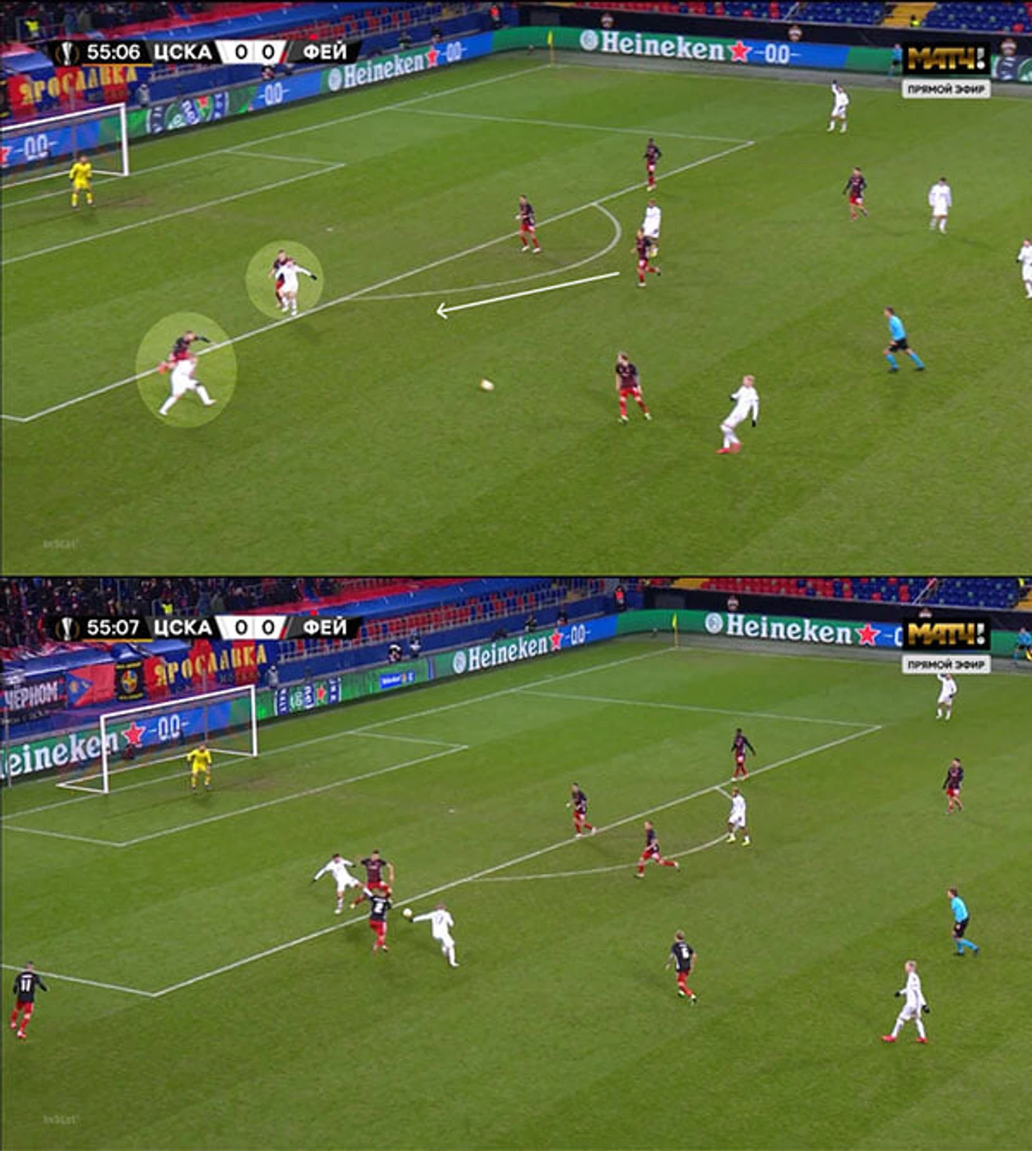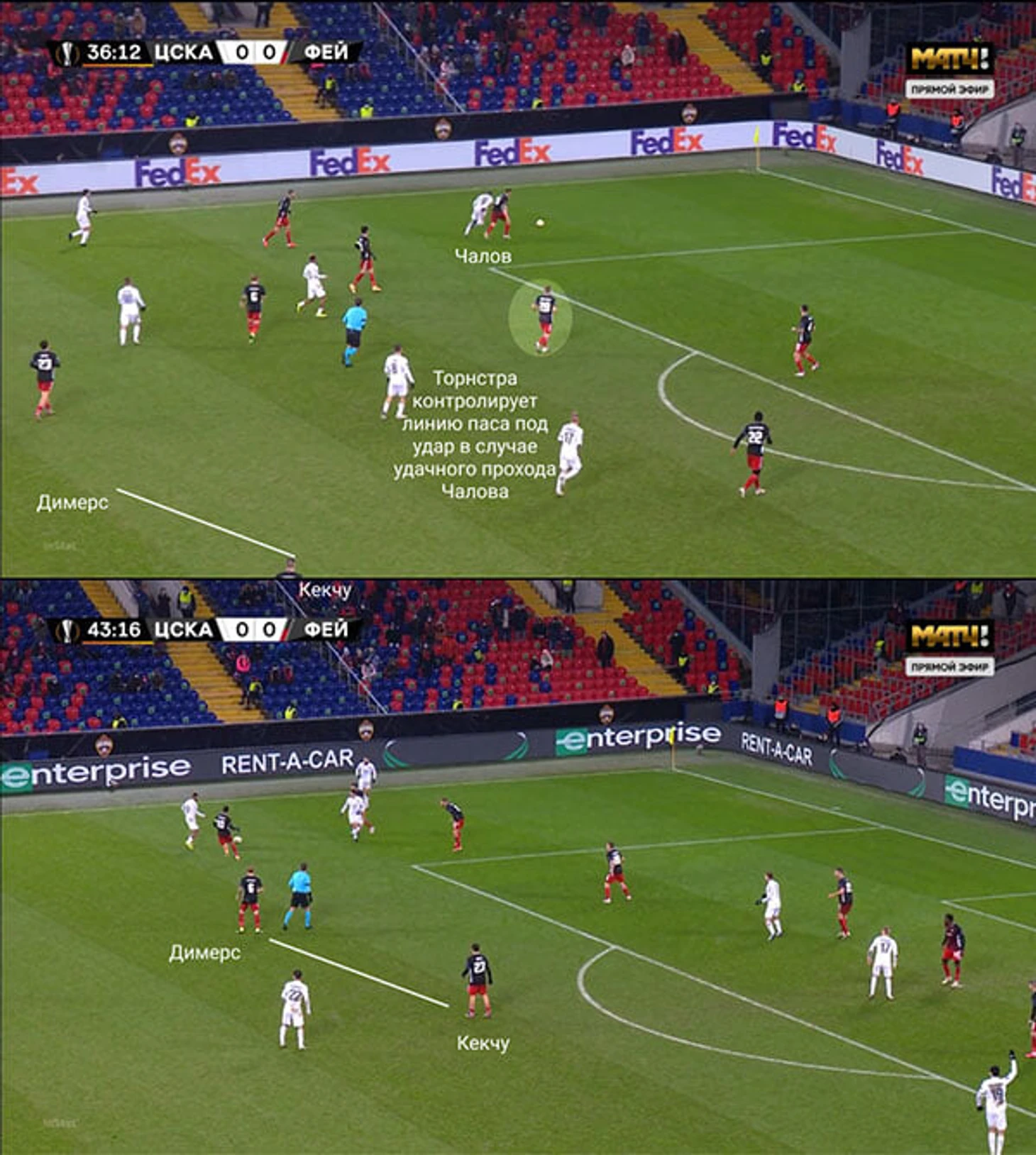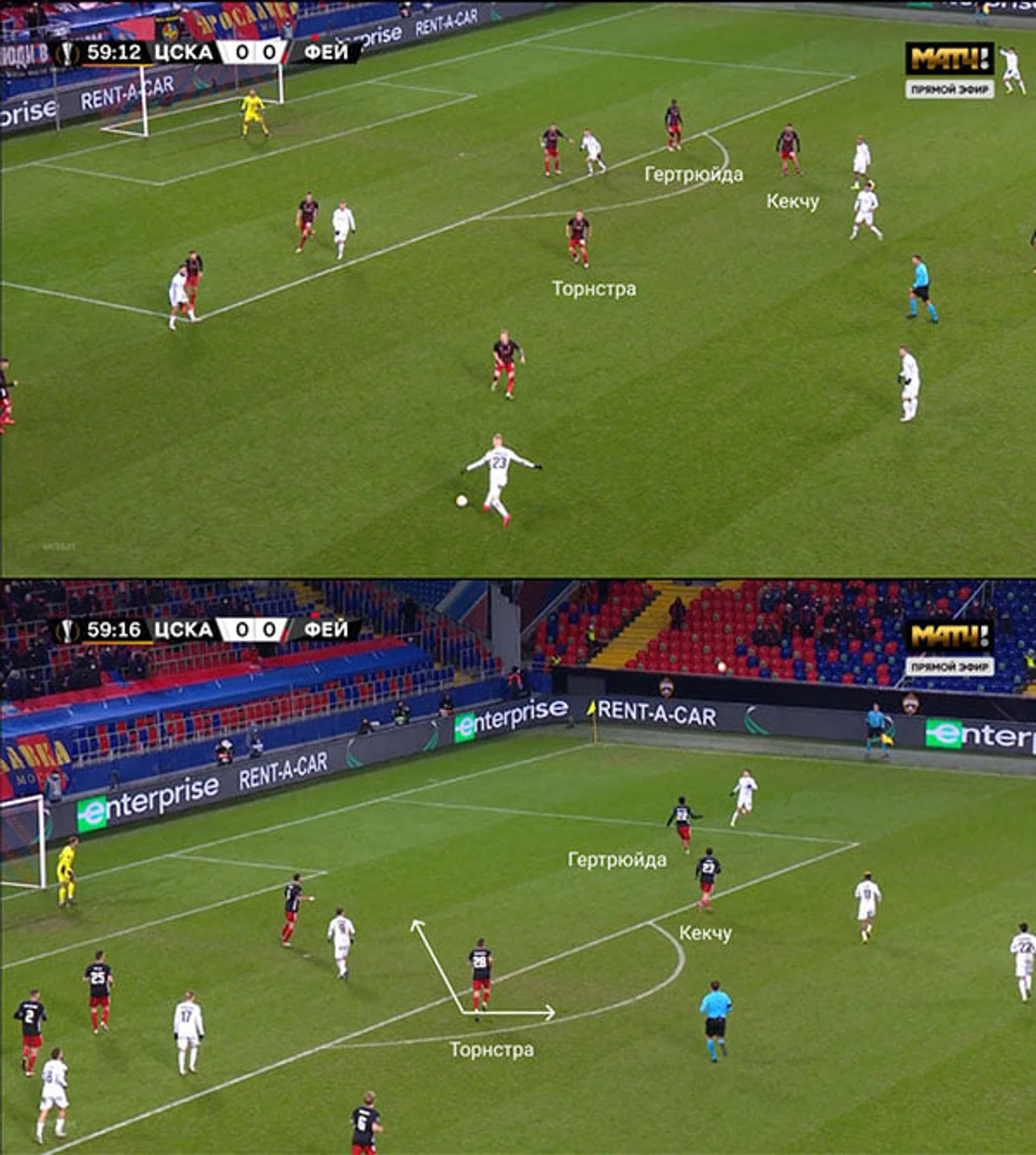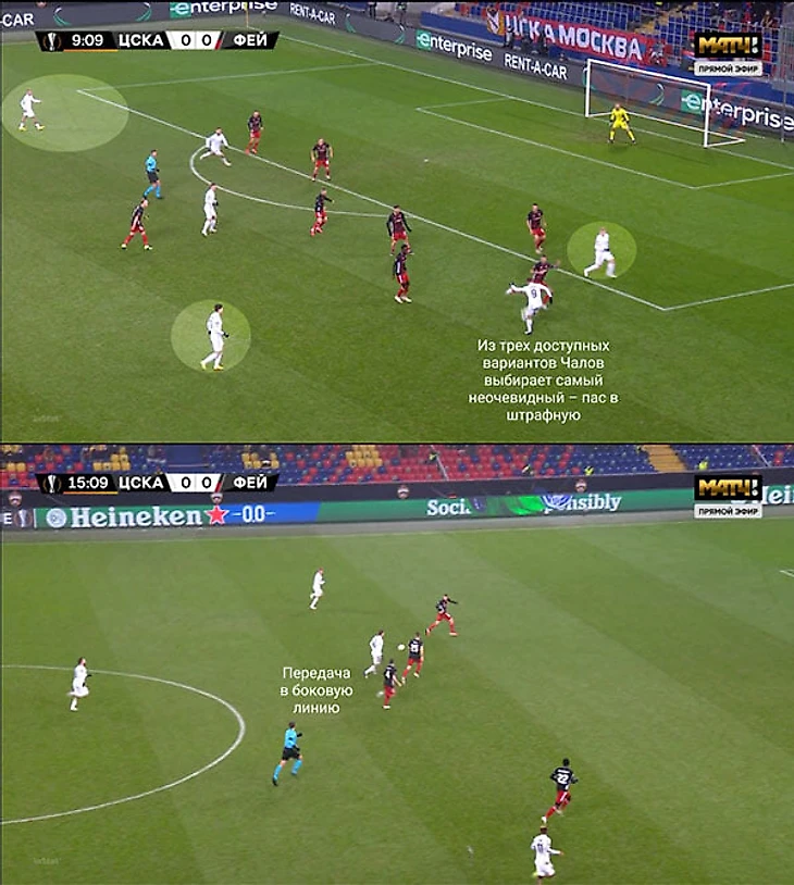 Отчасти это триггер к переводам: как только ЦСКА готовил диагональ направо, «Фейеноорд» перестраивался: Гертрюйда мгновенно выдвигался на край, Кекчю контролировал пространство между флангом и центром, а Торнстра страховал на линии штрафной.