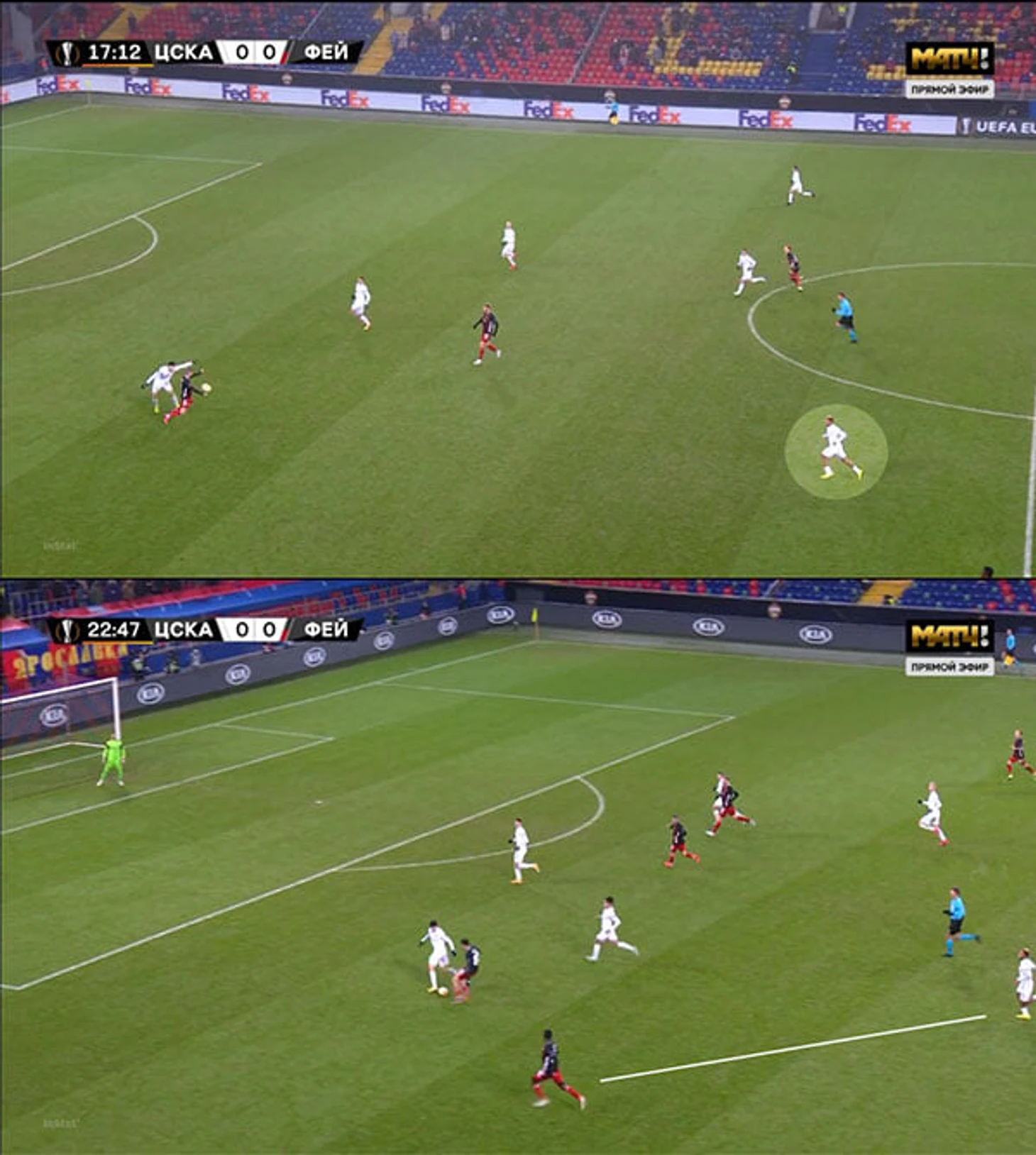• Классное начало от ЦСКА: несколько хороших позиционных атак с последующим выходом на ударные позиции.