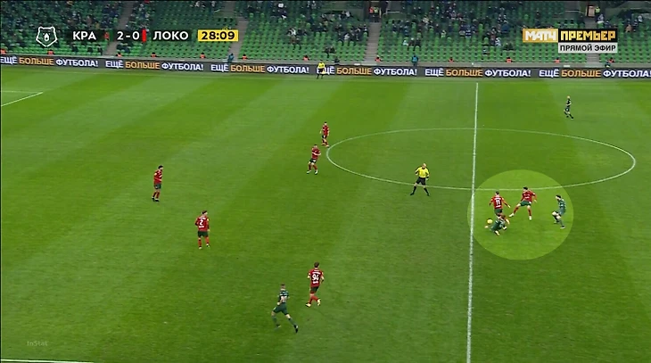 Такие эпизоды стали характерными для «Локо», поэтому не получилось наладить конструктивный контроль – многие атаки заканчивались практически сразу, потому что забросы не работали. Значит, «Локомотив» лишил себя возможности влиять на игру.