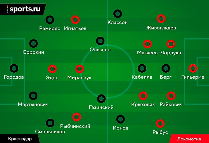 Основные изменения были в составе краснодарцев: Вандерсона на правом фланге заменил более дисциплинированный Алексей Ионов, а Кайо, которого многие ругали в Лиге чемпионов, травмировал колено и уступил место Егору Сорокину.