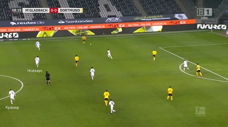«Гладбах» в первые минуты доминировал над «Боруссией», потому что ошарашил новой схемой: на этом отрезке у гостей 64% точных передач и 0 ударов по воротам;