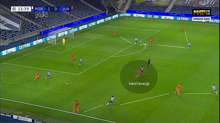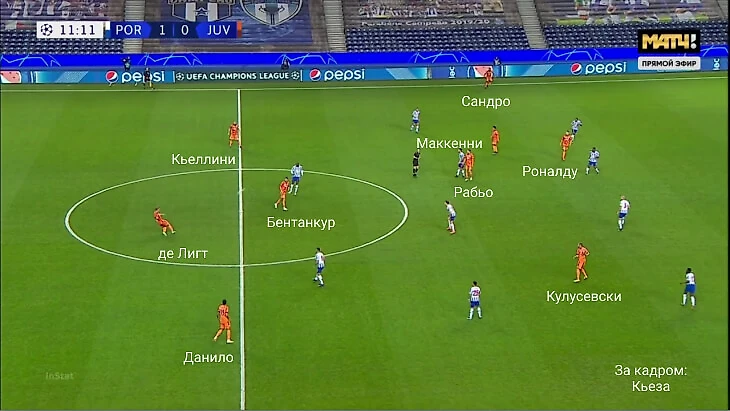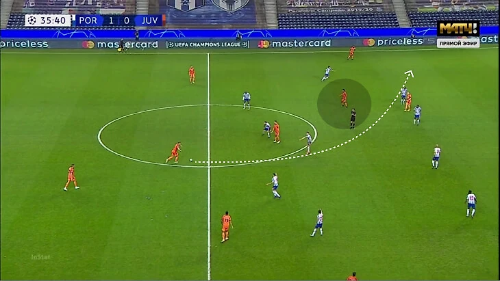 Основной прием, когда «Порту» все закрывал – кросс на фланг. Хотя португальцы часто упускали Маккенни + недостаточно использовали перегрузы от Бентанкура и Рабьо, туринцы постоянно тяготели к краям.
