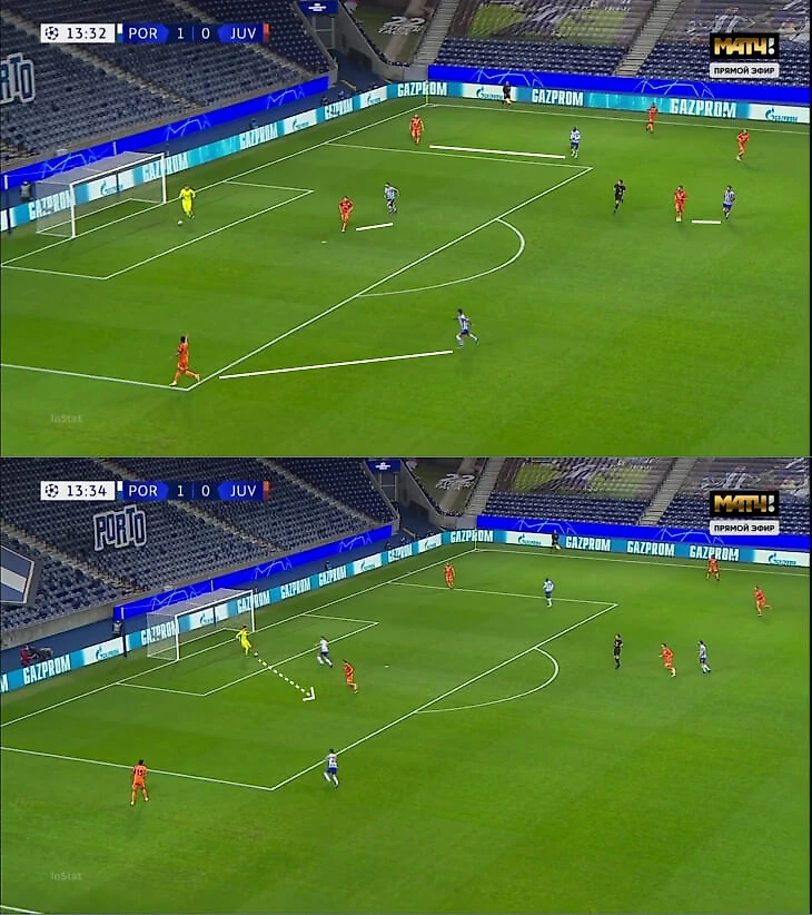 «Порту» доигрывал эпизоды до конца, разбирая всех футболистов «Ювентуса», поэтому в прессинге не было дыр.