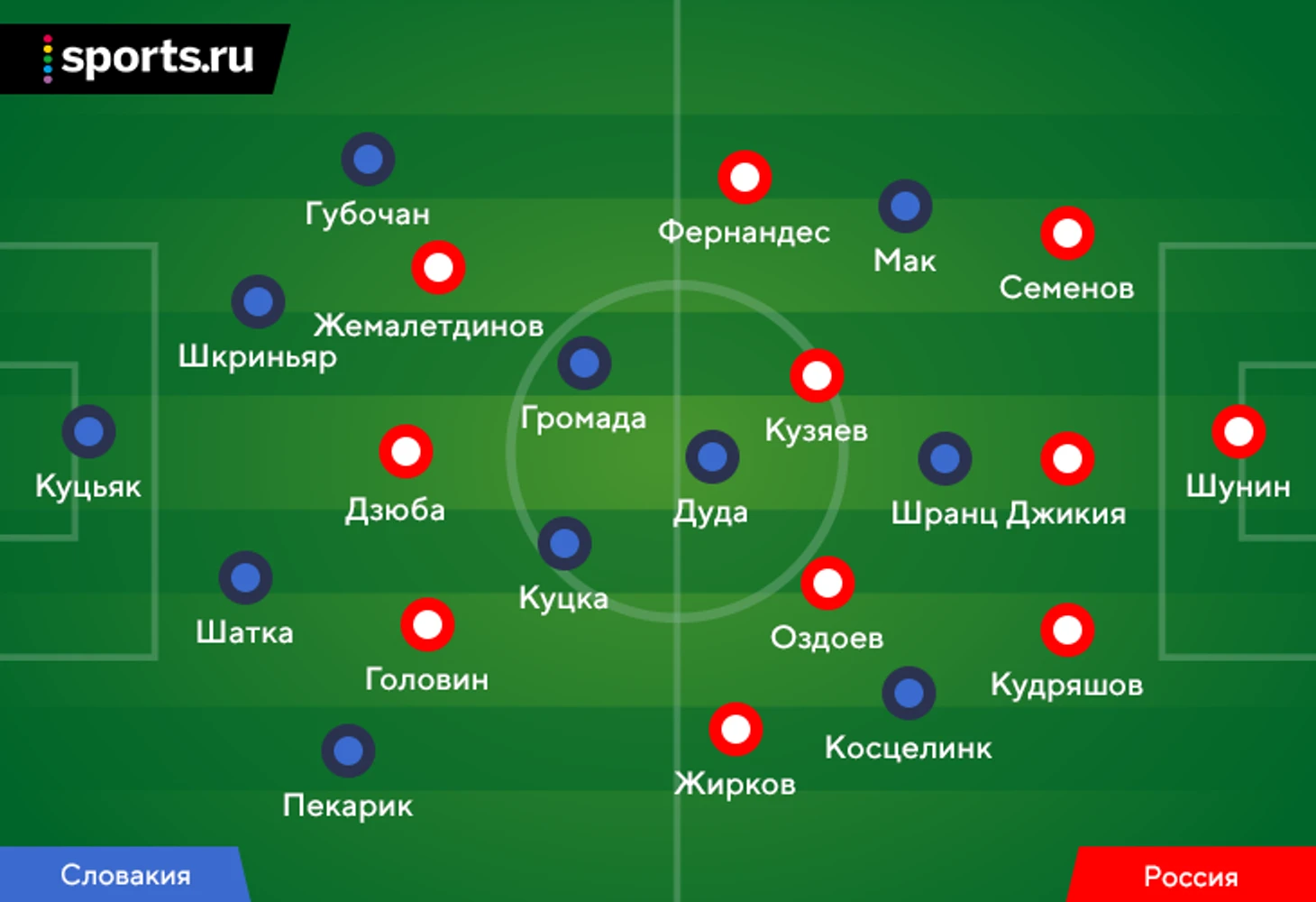 После Словении Станислав Черчесов сохранил победный состав, но в третий раз за этот цикл изменил систему: сборная перешла на 3-4-2-1 вместо ромба и прибавила в прессинг-агрессии.