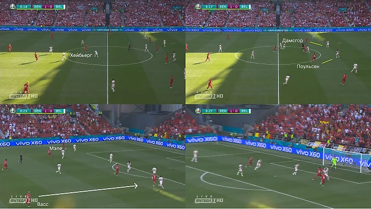 Против Бельгии Дания не так жестко заполняла штрафную, но все равно контролировала центр. Многое сводилось к индивидуальным дуэлям (в заключительной фазе у латералей), но в центре Дания тоже была хороша. Помогали роли инсайдов (временами еще вписывались Васс и Мэле).