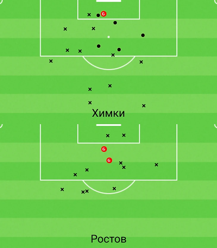 Другой стилистический маркер матча – отказ «Ростова» от прессинга. В матче против «Динамо» атакующая тройка встречала центральных защитников около их штрафной, а остальная команда поддерживала активное давление – хозяева выбили 9,42 PPDA (количество пасов соперника на своей половине, разделенное на собственные оборонительные действия). Чем ниже этот показатель – тем интенсивнее прессинг.