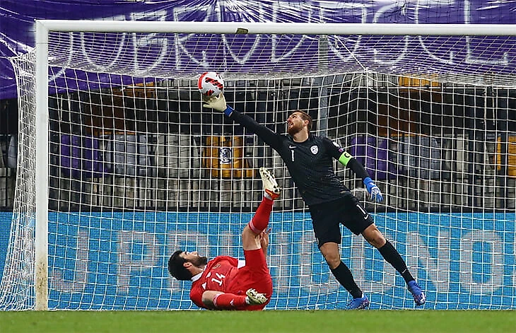 Вторая атака – опаснее. Ловрич и Гнезда-Черин после потери накрыли Фомина и Баринова – так Словения вышла на опасный навес, когда Шпорар пробил прямо в Сафонова.