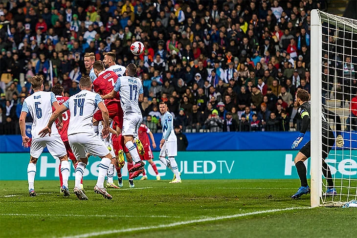 В матче против Словакии Россия практически сдала фланги. Вчера стало лучше, несмотря на гол, который пришел как раз слева (в других ситуациях несколько раз было неприятно, но сейчас подготовились лучше). Третий – стандарты. В прошлых матчах Россия показала несколько розыгрышей угловых, но забила только в Мариборе.