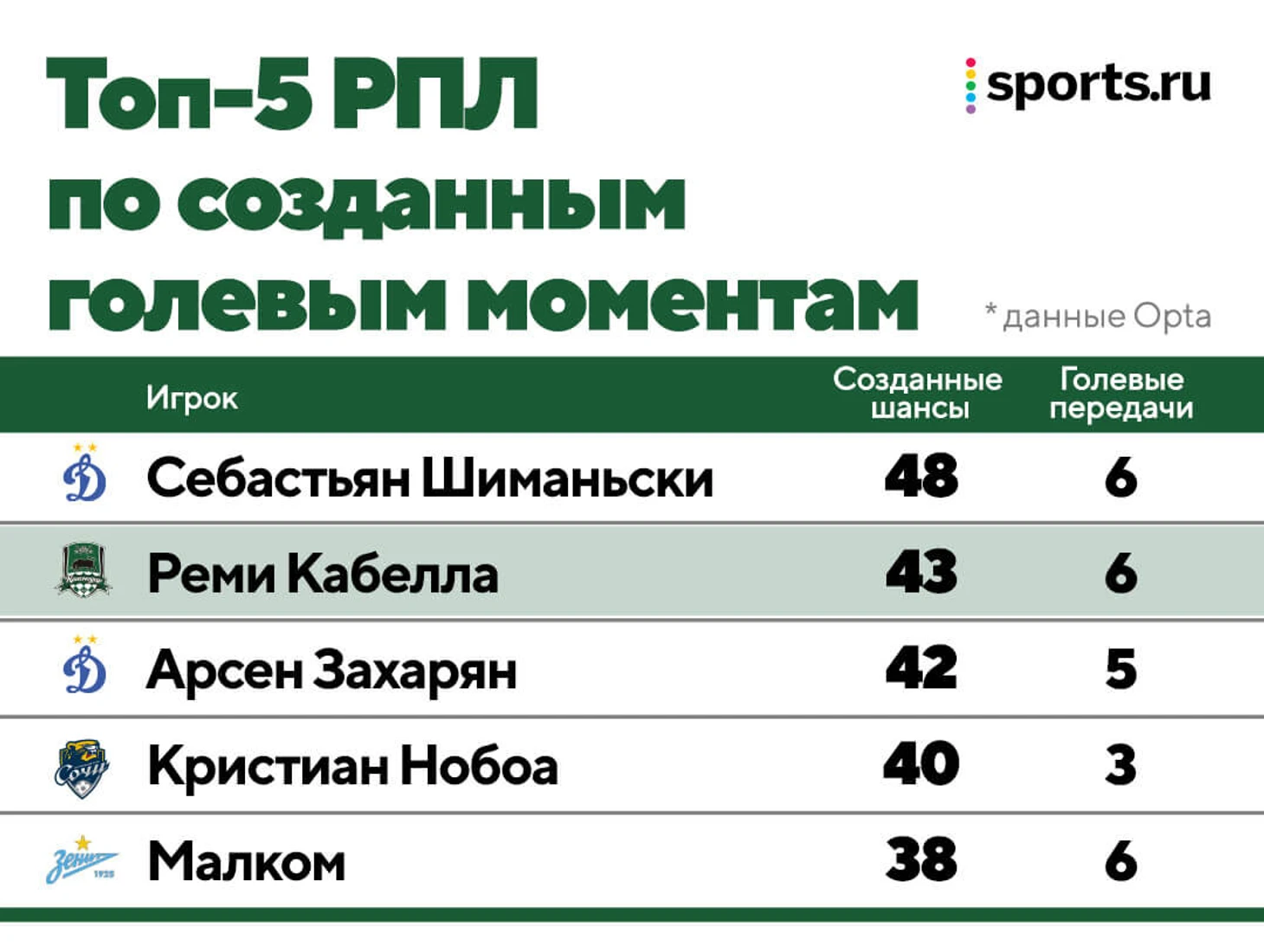 Именно Реми – самый опасный игрок «Краснодара». Он лидирует в РПЛ по созданным голевым моментам, плюс лучший в «Краснодаре» практически по всем атакующим показателям (ожидаемые голевые, ключевые передачи, прямой вклад в атаки, успешный дриблинг).