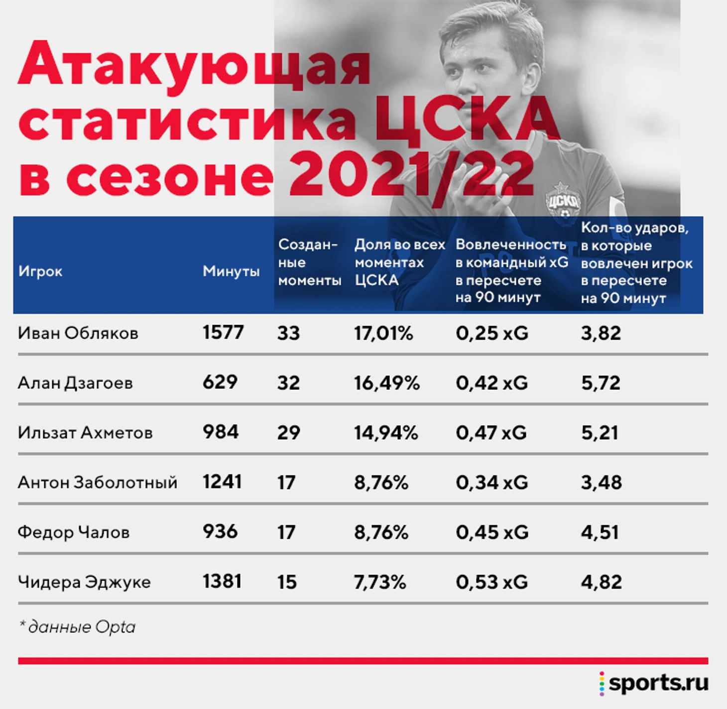 Еще один ракурс: Дзагоев сыграл в 2,5 раза меньше, чем Обляков, но создал практически столько же.